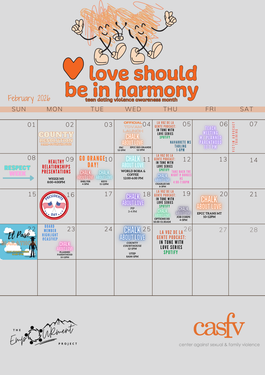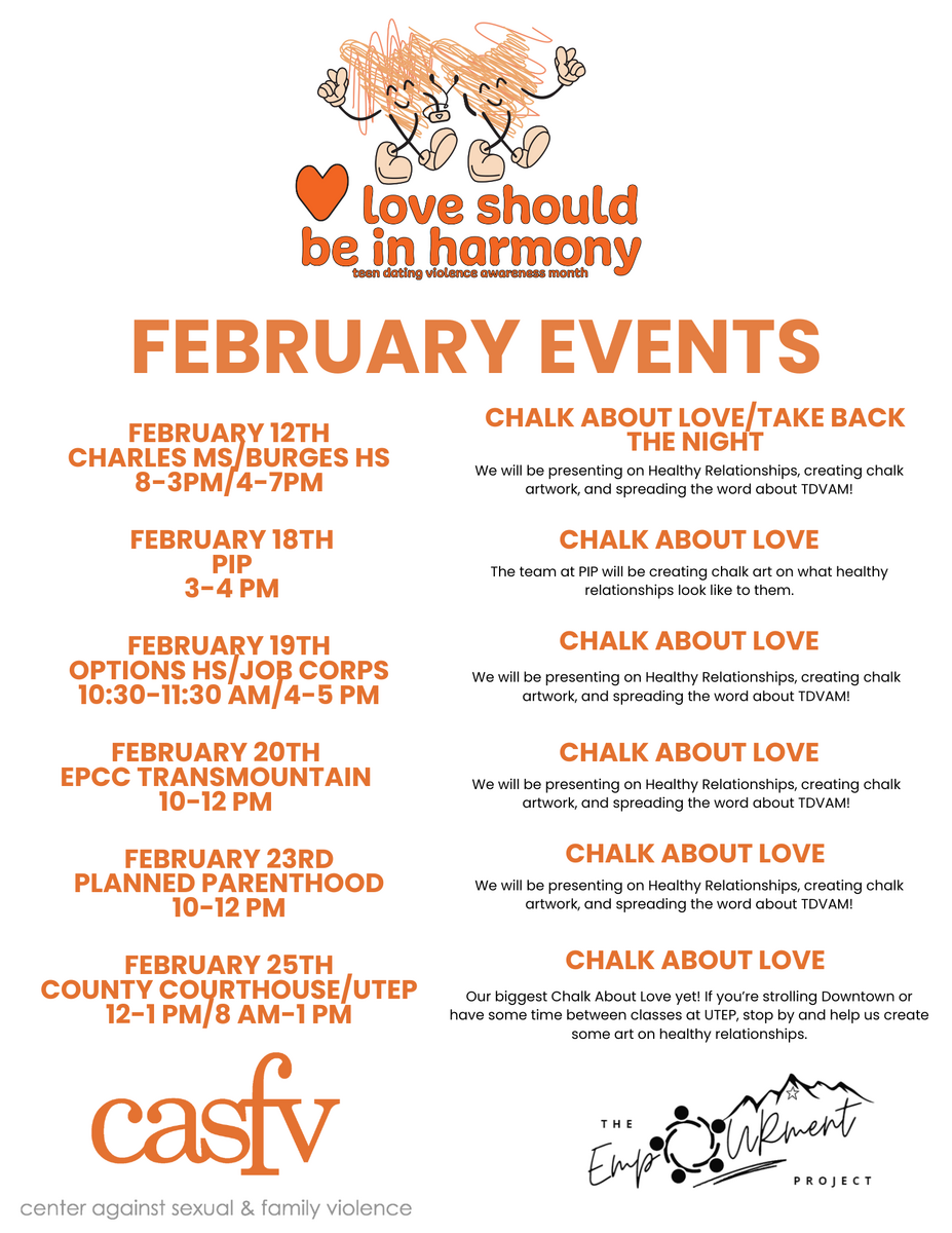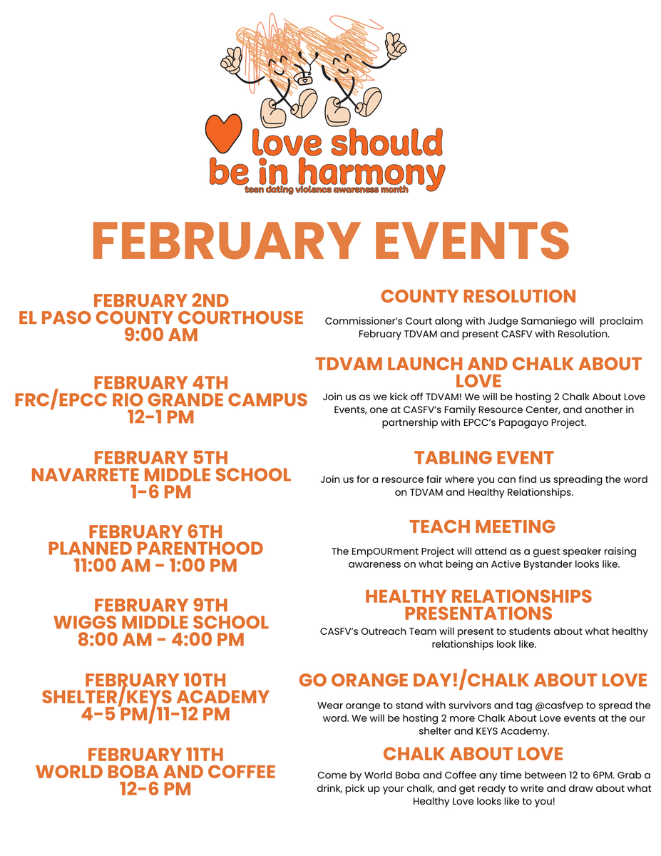 Throughout the month, CASFV will host and participate in a variety of TDVAM events, including community outreach, educational workshops, youth engagement activities, and awareness campaigns.